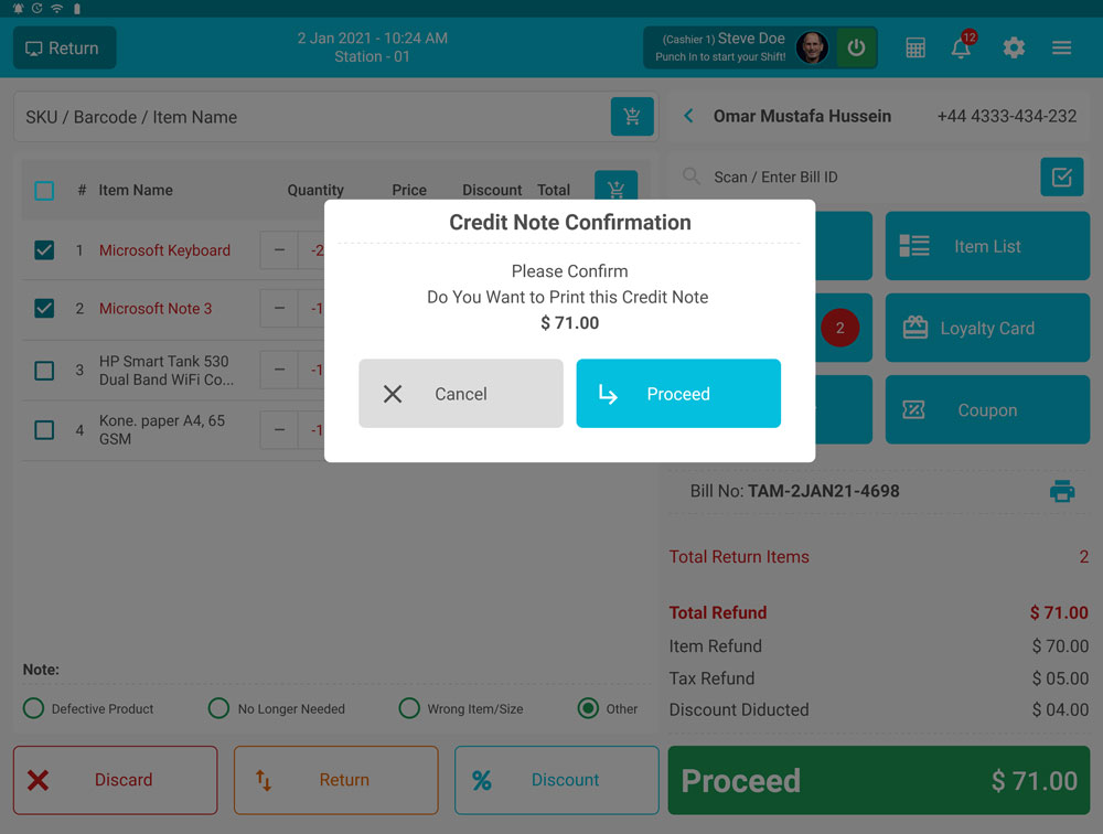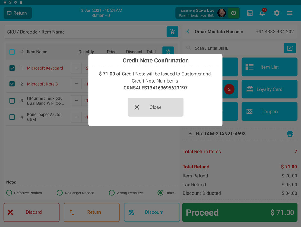 Credit Note Confirmation